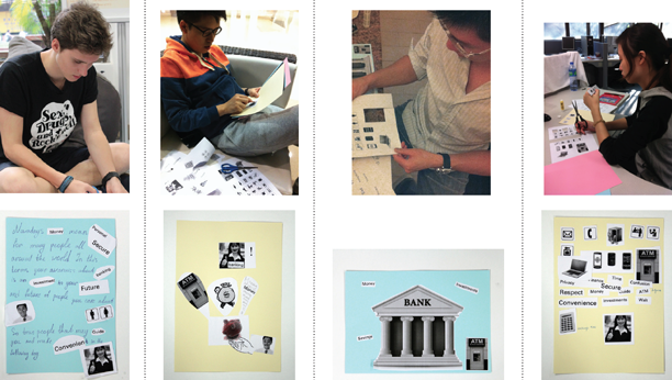 We wanted an emotional and creative response, rather than common words and stereotypes. That's why we used a collage, providing a large set of materials to express free and out of the box.